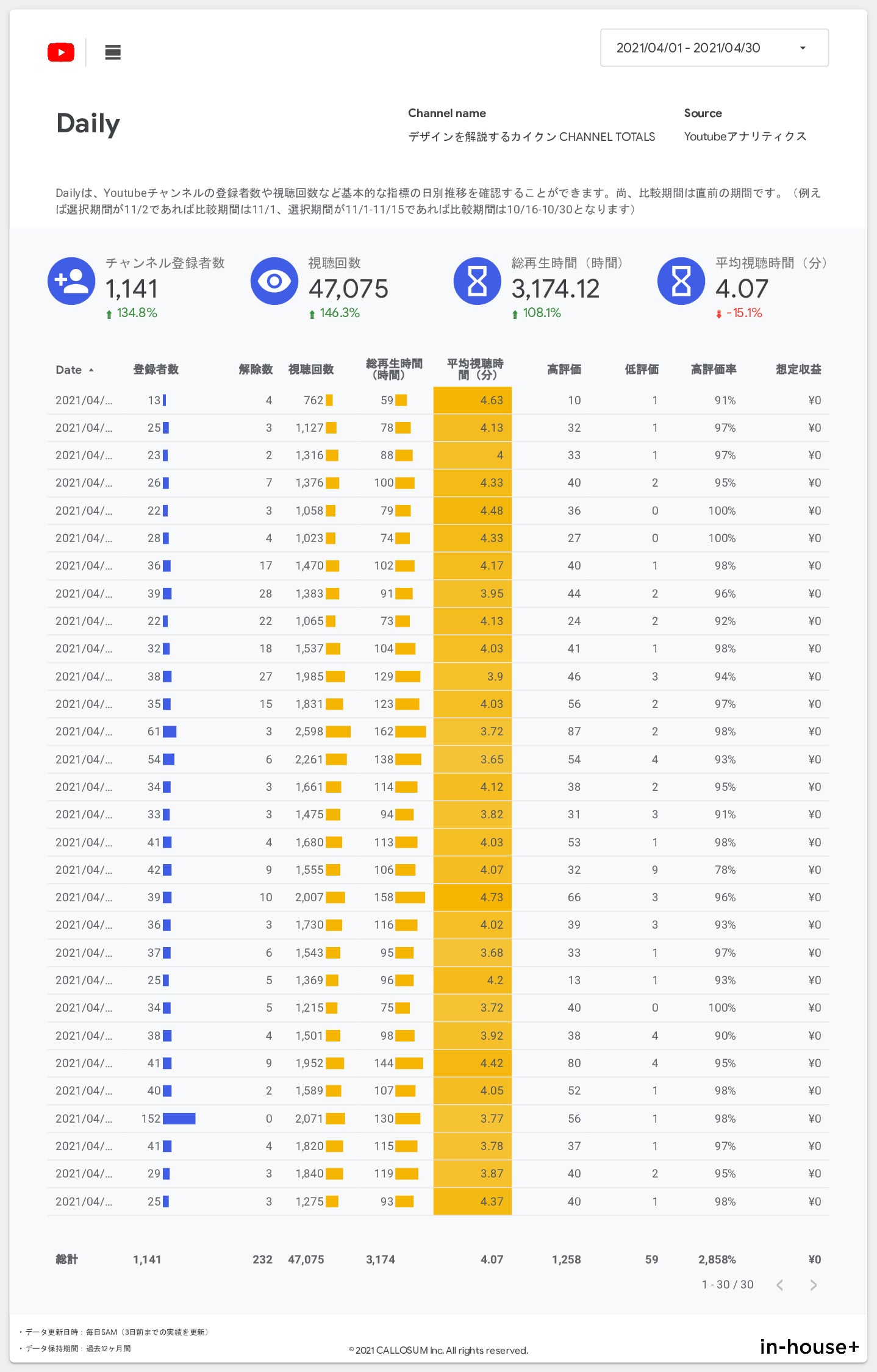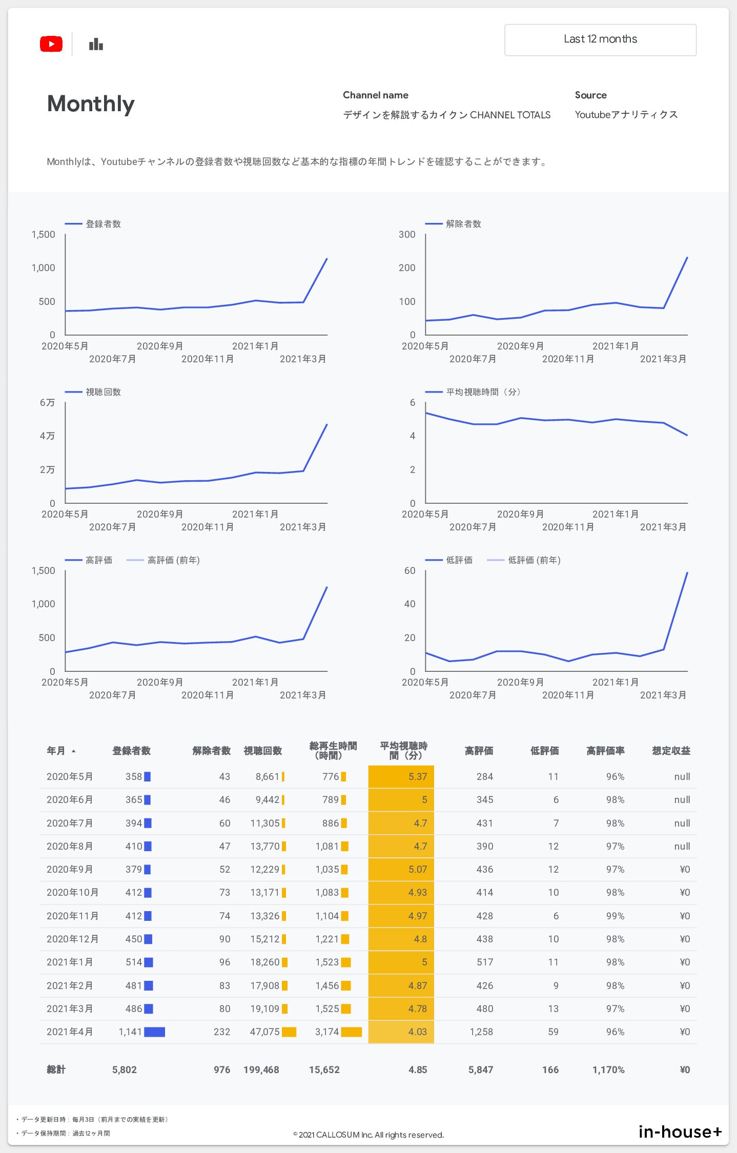 【サブスク版】Youtubeアナリティクスレポートテンプレート(0007)